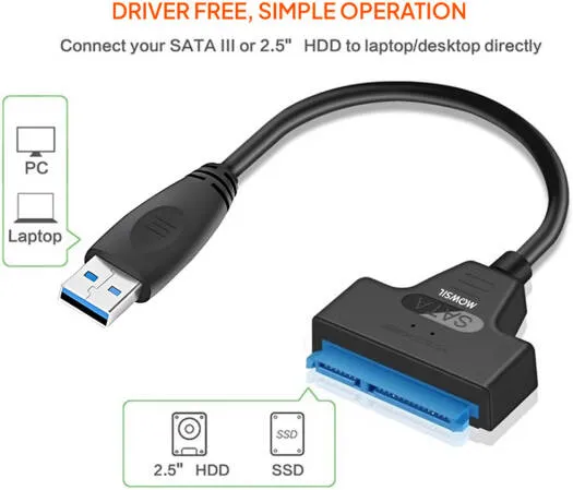 Improve your data transfer experience with the Mowsil USB 3.0 to SATA Cable Adapter. This cutting-edge solution allows you to connect your SATA devices to a USB 3.0 connection for flawless data transfer and unequaled adaptability. Discover how this adaptor may improve your connectivity and ease your digital life.